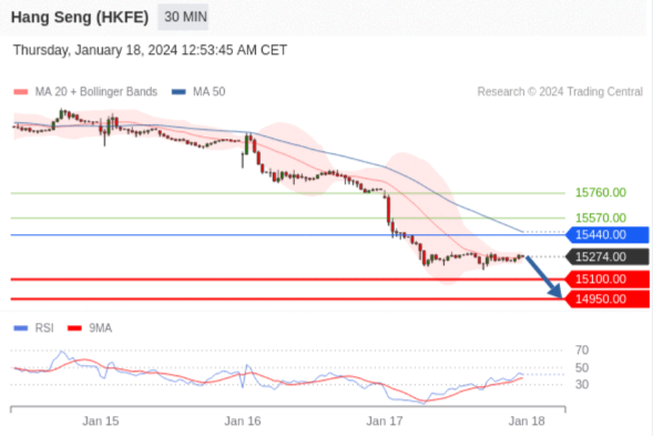 交易策略: 在 15440.00 之下,看跌,目标价位为 15100.00 ,然后为 14950.00 。