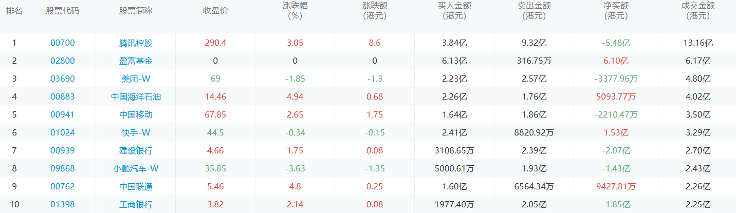 亚汇网1月25日港股通数据统计显示:盈富基金净买入额居首,达6.13亿港元,腾讯控股净卖出额居第一位。