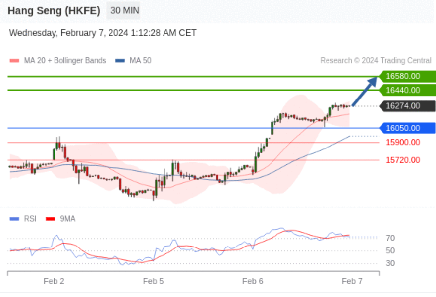 在 16050.00 之上,看涨,目标价位为 16440.00 ,然后为 16580.00 。