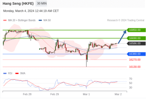 交易策略: 在 16380.00 之上,看涨,目标价位为 16690.00 ,然后为 16850.00 。