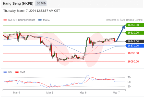 交易策略: 在 16370.00 之上,看涨,目标价位为 16610.00 ,然后为 16750.00 。