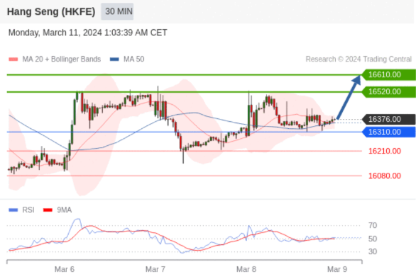 在 16310.00 之上,看涨,目标价位为 16520.00 ,然后为 16610.00 。