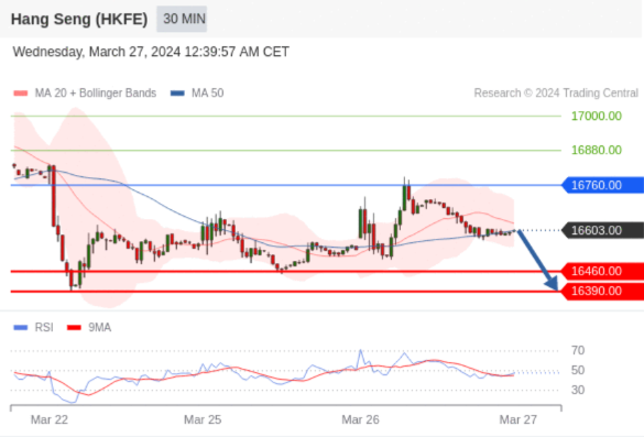 交易策略: 在 16760.00 之下,看跌,目标价位为 16460.00 ,然后为 16390.00 。