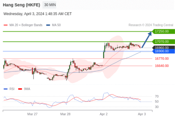 在 16900.00 之上,看涨,目标价位为 17070.00 ,然后为 17250.00 。