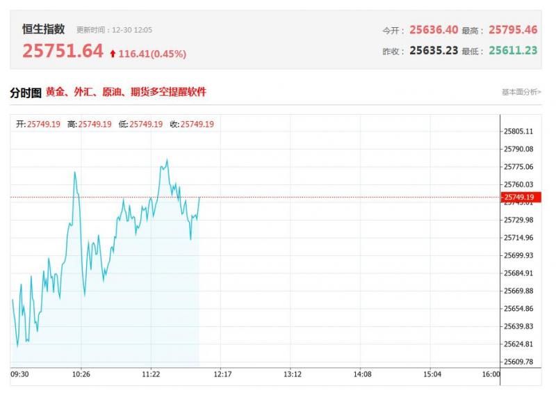 上午盘面:港股早盘震荡偏强,走势反覆,恒指今早平开1点报25636点,一度倒跌24点低见25611点后回稳,其后重拾涨势升幅一度扩大至逾百点,最多升140点高见25775点。截至收盘,恒指早盘收涨0.44%,科指早盘收涨1.04%,恒指大市成交额收窄至965.4亿港元。盘面上,半导体股延续昨日强势,油气、影视股大涨,有色金属、重型机械股反弹,机器人概念股走强;生物医药、化妆品股延续弱势,新消费概念、电力设备、光伏太阳能股震荡回调。个股方面,英矽智能(03696.HK)首日上市涨超34%,美联股份(02671.HK)涨超30%,百度(09888.HK)涨近7%,中国海洋石油(00883.HK)涨超4%;老铺黄金(06181.HK)、泡泡玛特(09992.HK)跌超5%,信义光能(00968.HK)跌近2%。(金十数据APP)