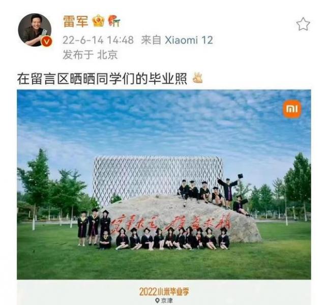 昨天,全国工商联副主席、小米科技创始人雷军先生在社交平台新浪微博发布文章,以北京建筑大学毕业生的毕业照为示例,就2022小米毕业季与广大网友展开互动,号召同学们晒晒毕业照。